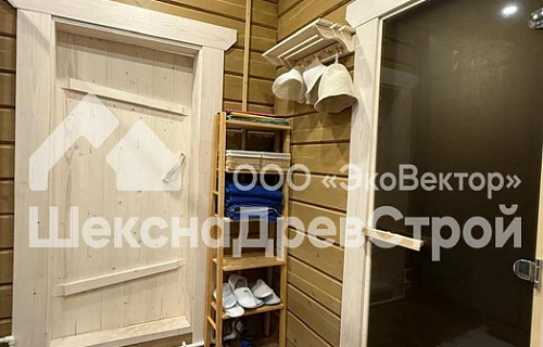 Комната отдыха, благодаря большим окнам, наполнена естественным светом и предлагает прекрасный вид на окружающий ландшафт. Это идеальное место для релаксации после парной, где можно насладиться тишиной и уютом.