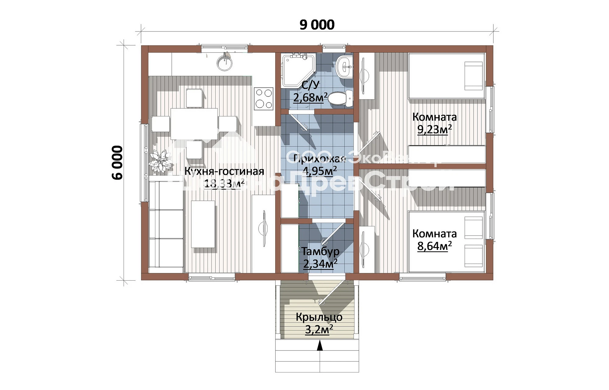 Одноэтажный дом из профилированного бруса с размерами 6х9м.- Б-60 Снежок