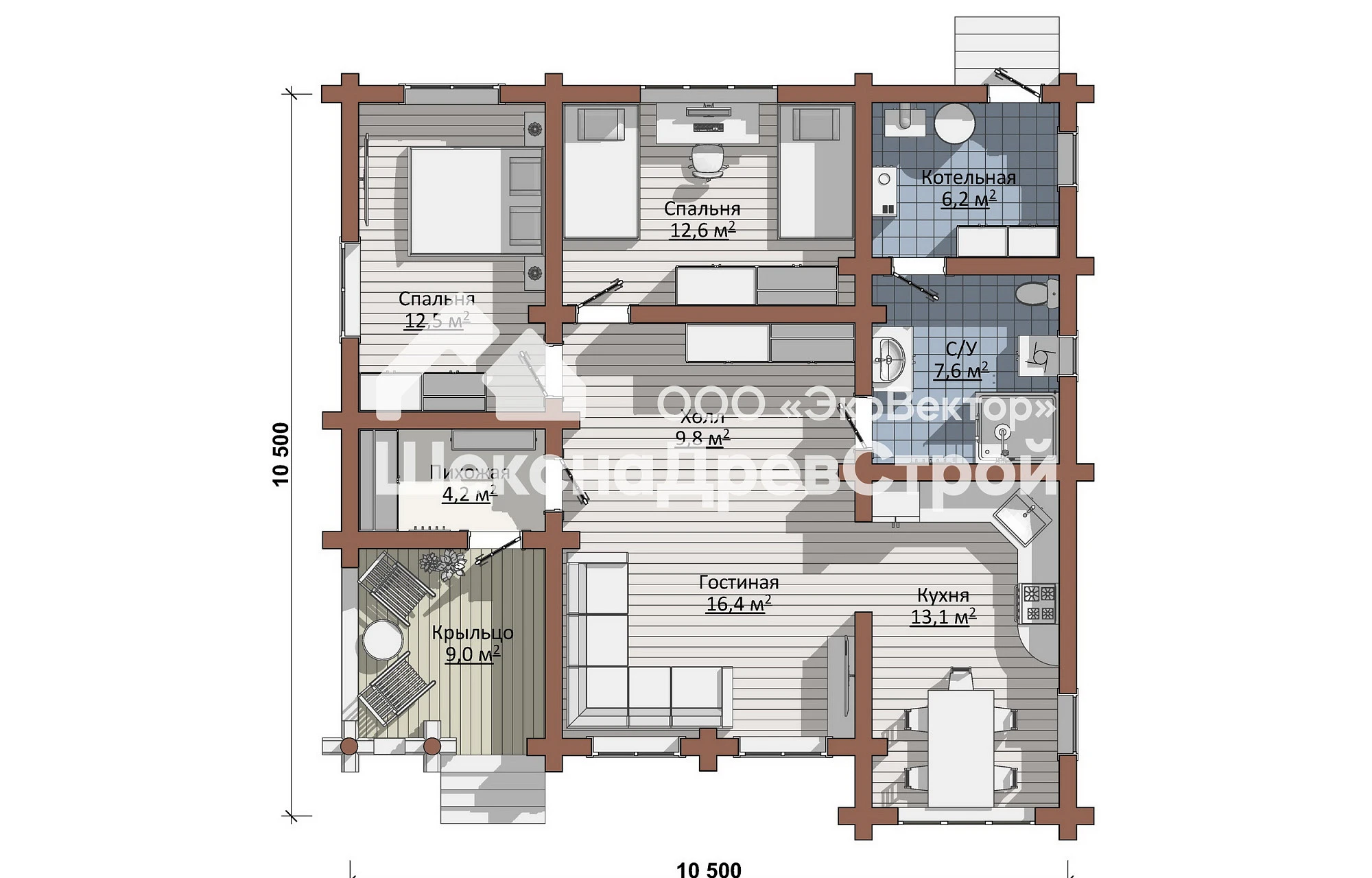 Внутри дома ощущается приятный аромат дерева, который успокаивает и расслабляет. Здесь царит атмосфера тепла и уюта, располагающая к отдыху и общению с близкими.