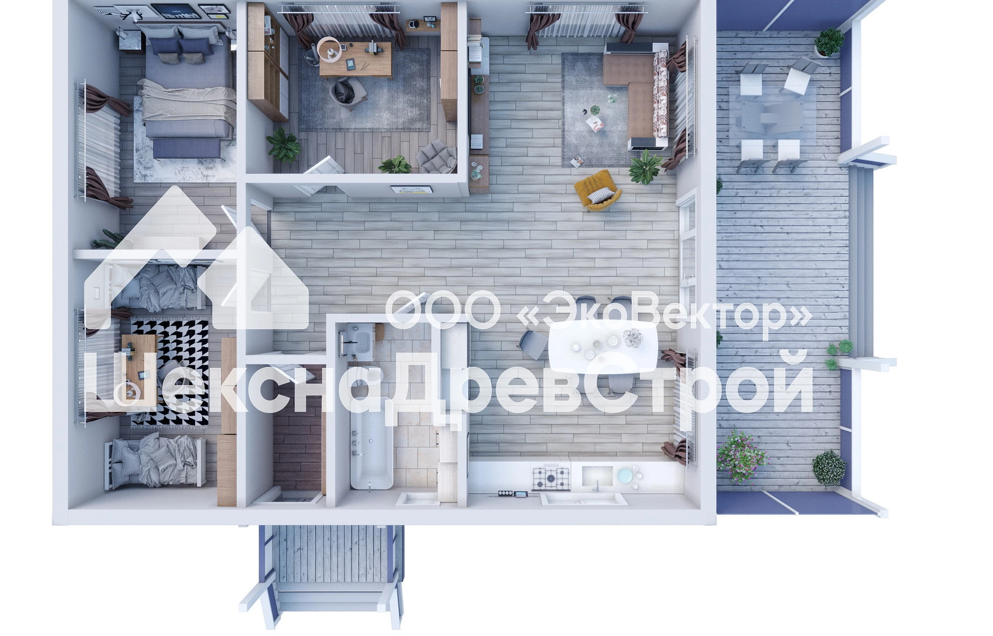 Каркасная конструкция дома обеспечивает прочность и долговечность, а также позволяет реализовать любые архитектурные решения. Использование современных материалов и технологий в нашем доме по проекту К-281-Аксель гарантирует высокую энергоэффективность и экологичность дома.