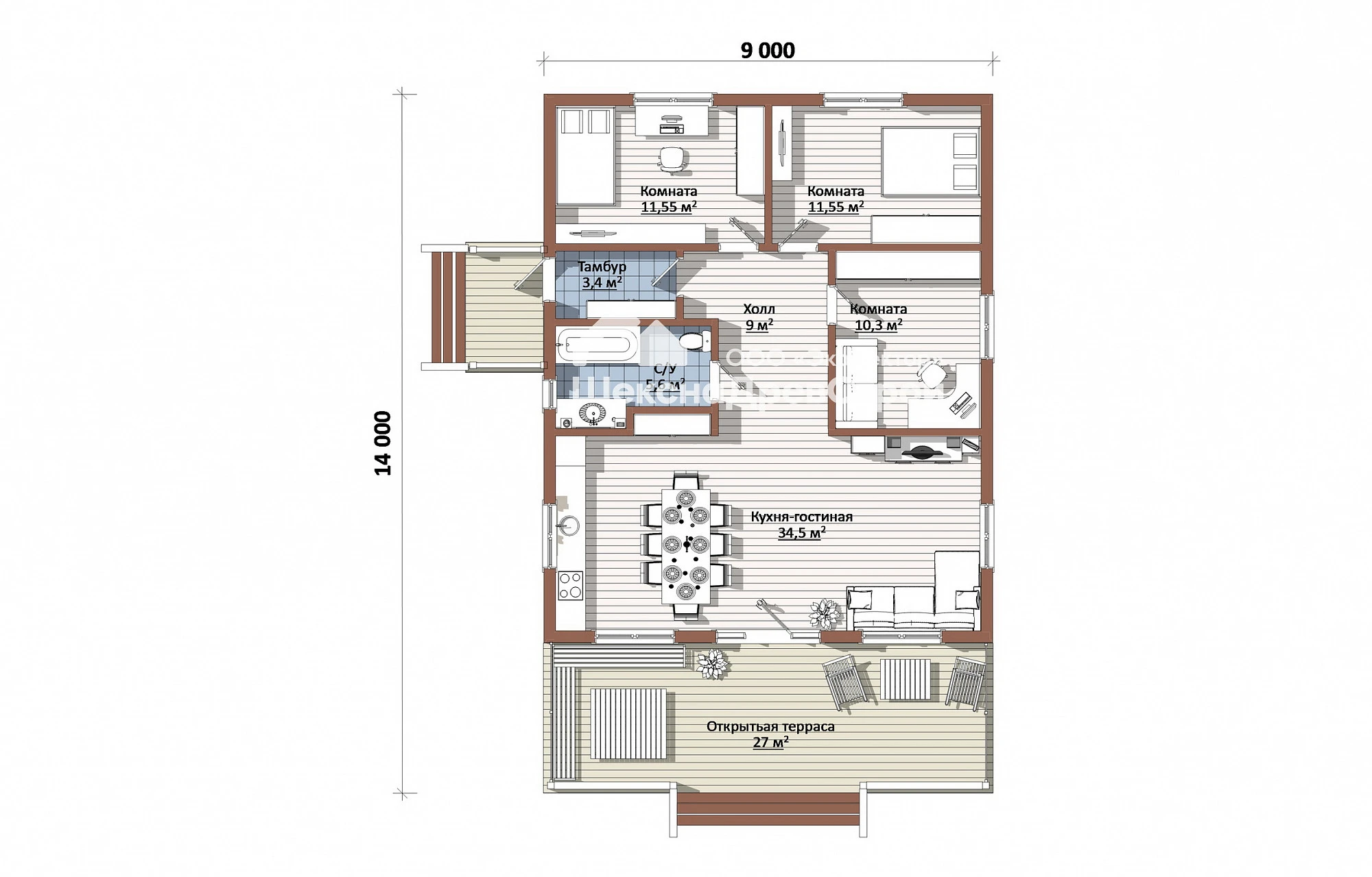 Просторная терраса – идеальное место для отдыха на свежем воздухе. Здесь можно проводить время с семьей и друзьями, наслаждаться тихими вечерами или устраивать пикники. Терраса может быть оборудована садовой мебелью, барбекю и другими удобствами для комфортного отдыха.